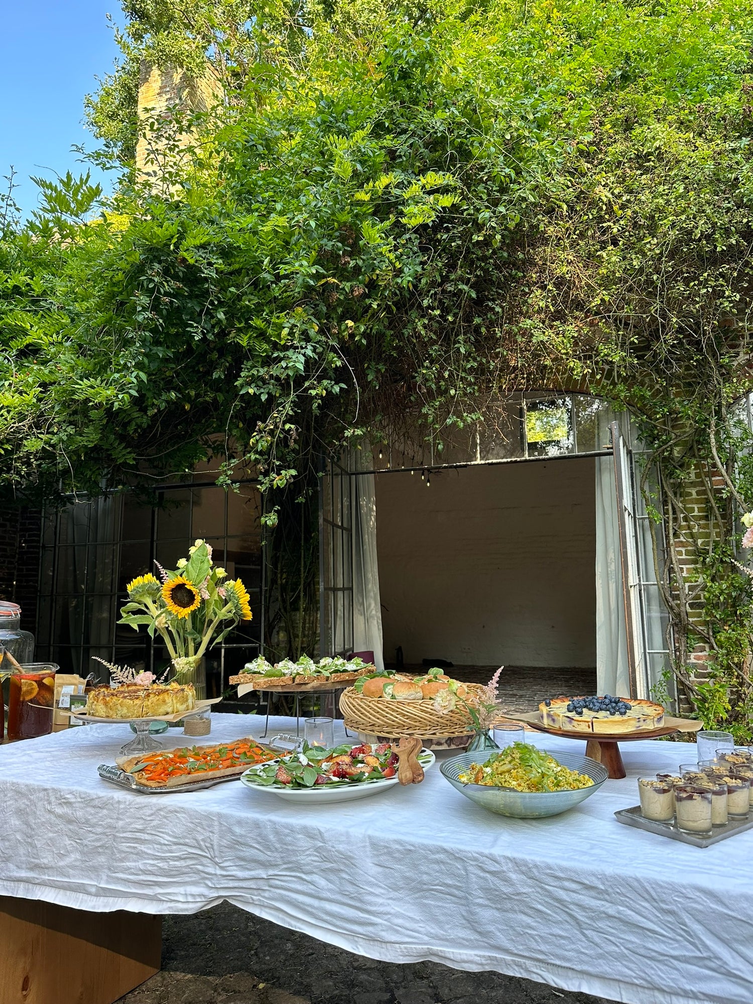 De brunch is voor het grootste deel vegetarisch maar laat zeker weten indien er allergieën of intoleranties zijn waar we rekening mee moeten houden.