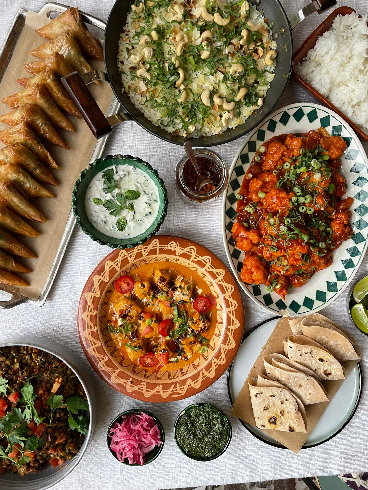 - Samosa met gekarameliseerde rode ui en paneer